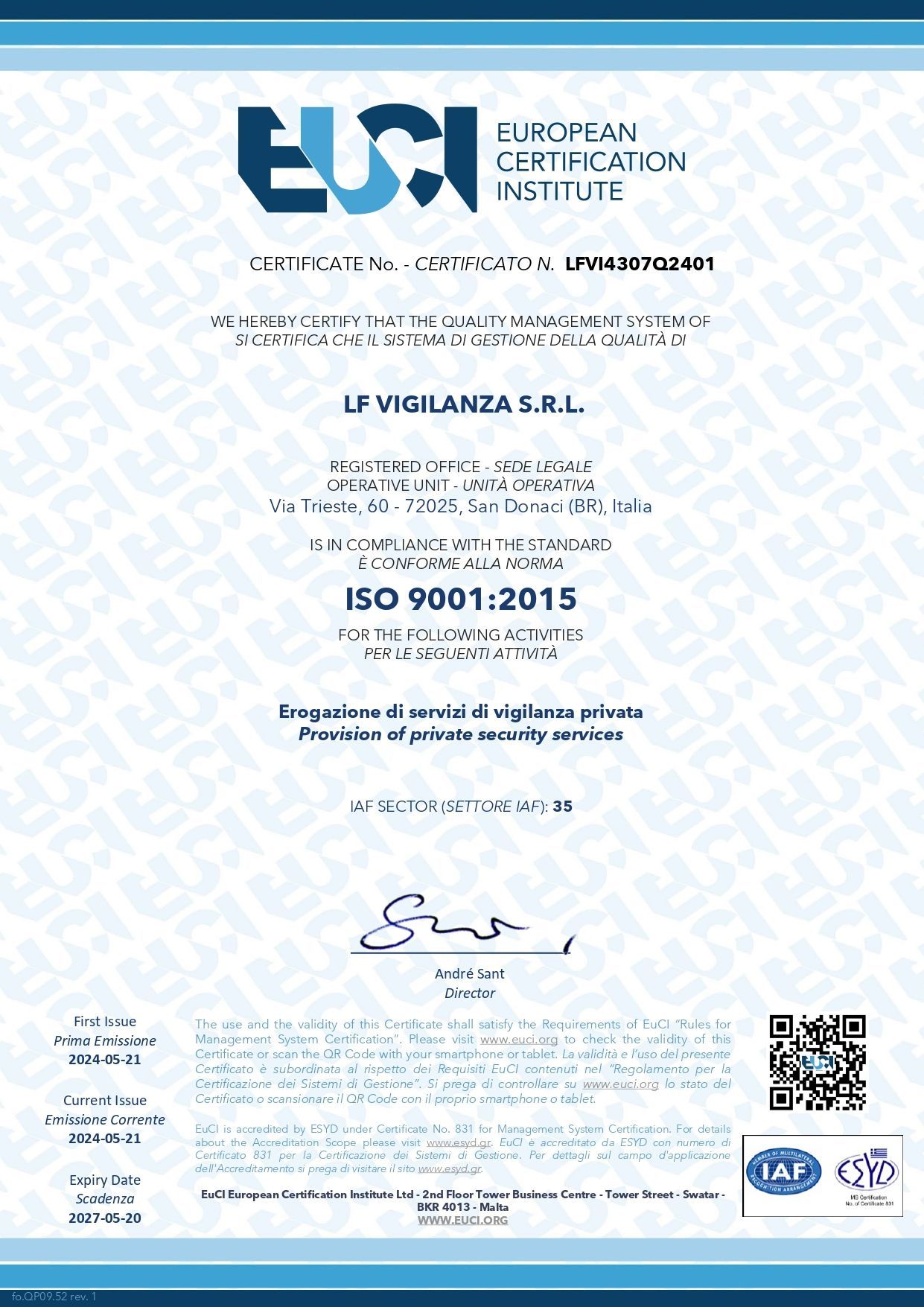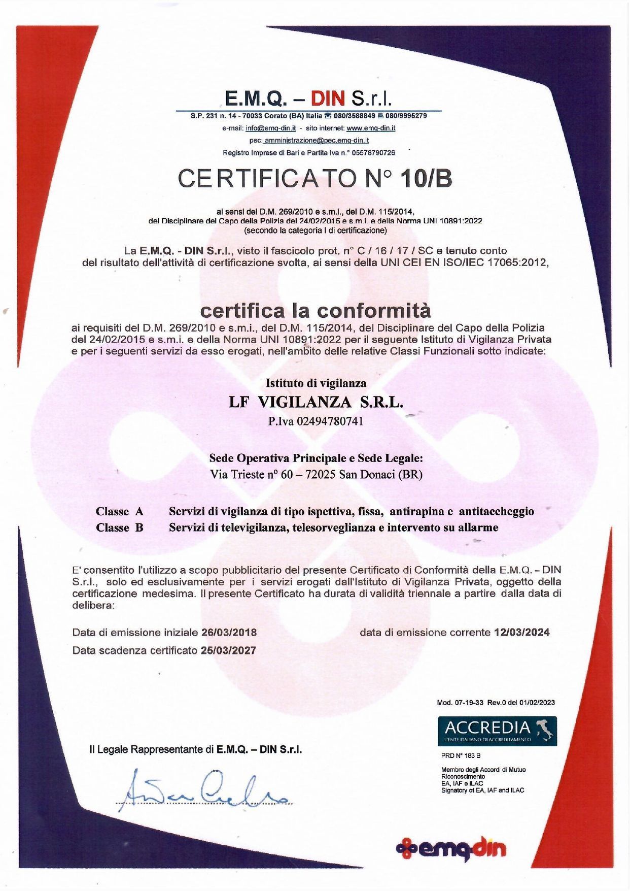 La missione di LF Vigilanza è fornire al cliente un servizio di sicurezza efficace e garantito. L’efficienza dei servizi e la presenza capillare sul territorio, a difesa dei beni dei clienti, fanno di LF Vigilanza un marchio di sicurezza e affidabilità.